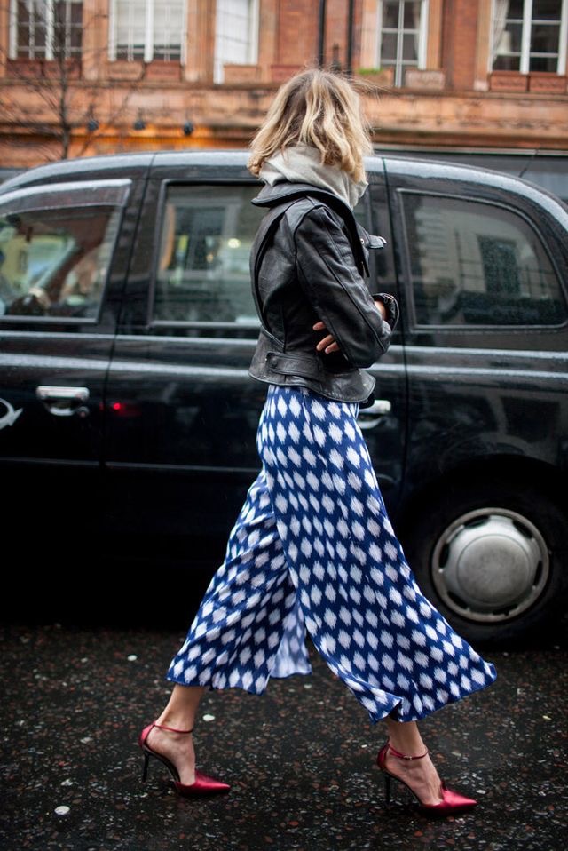 4. Em uma combinação ao estilo lady like, com terninho num tom harmônico, bolsa tiracolo e sapatilha de bico fino, ambas preto e branca pra não brigar com a estampa da calça.