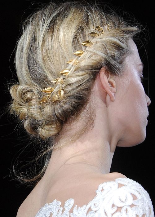 Encontrei muitos penteados com essas tiaras delicadas feitas de folhas que ganharam meu coração. Não é trend, é só estilo pessoal.