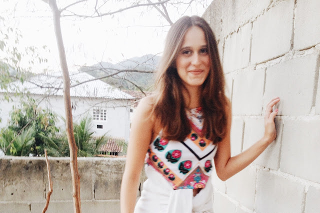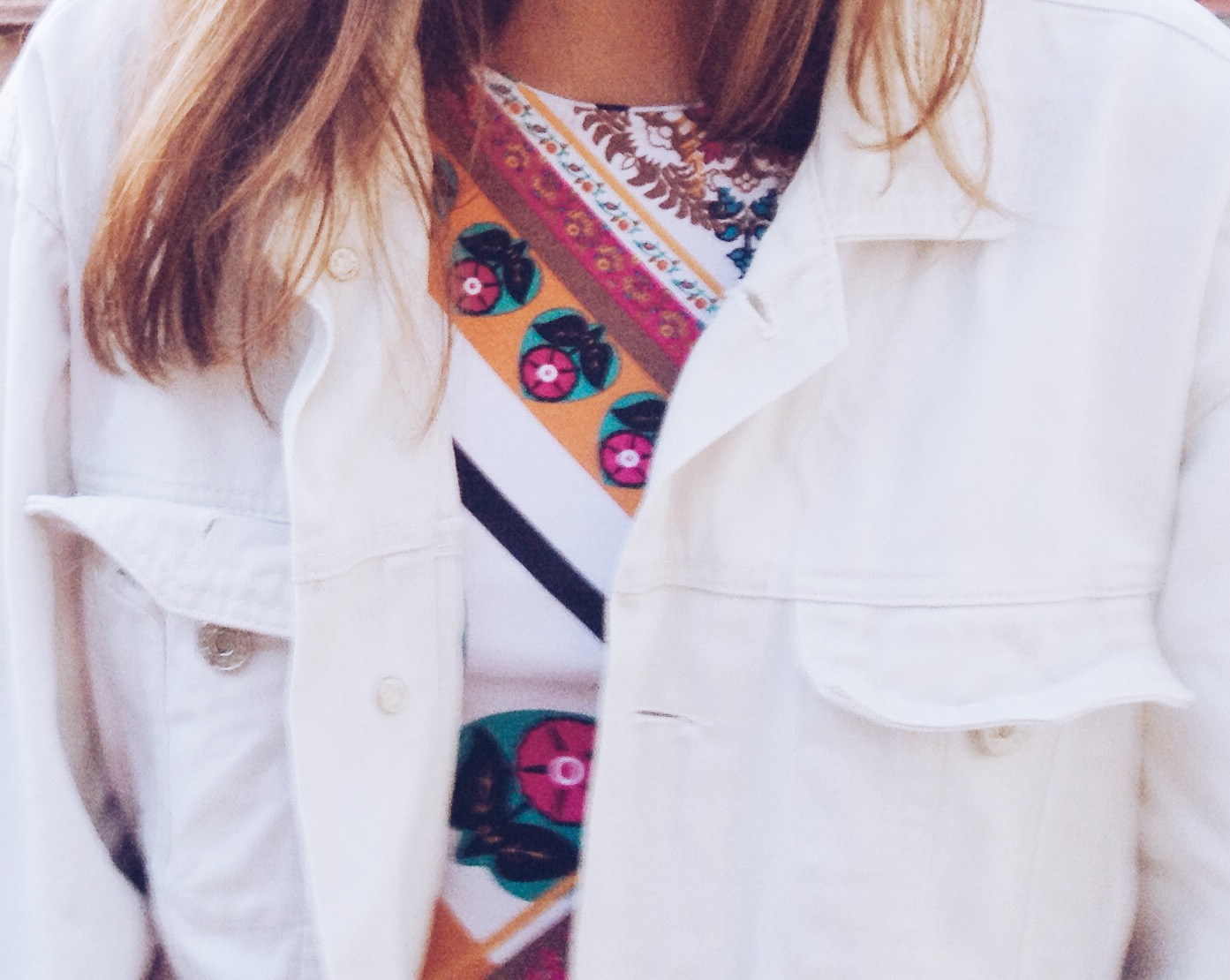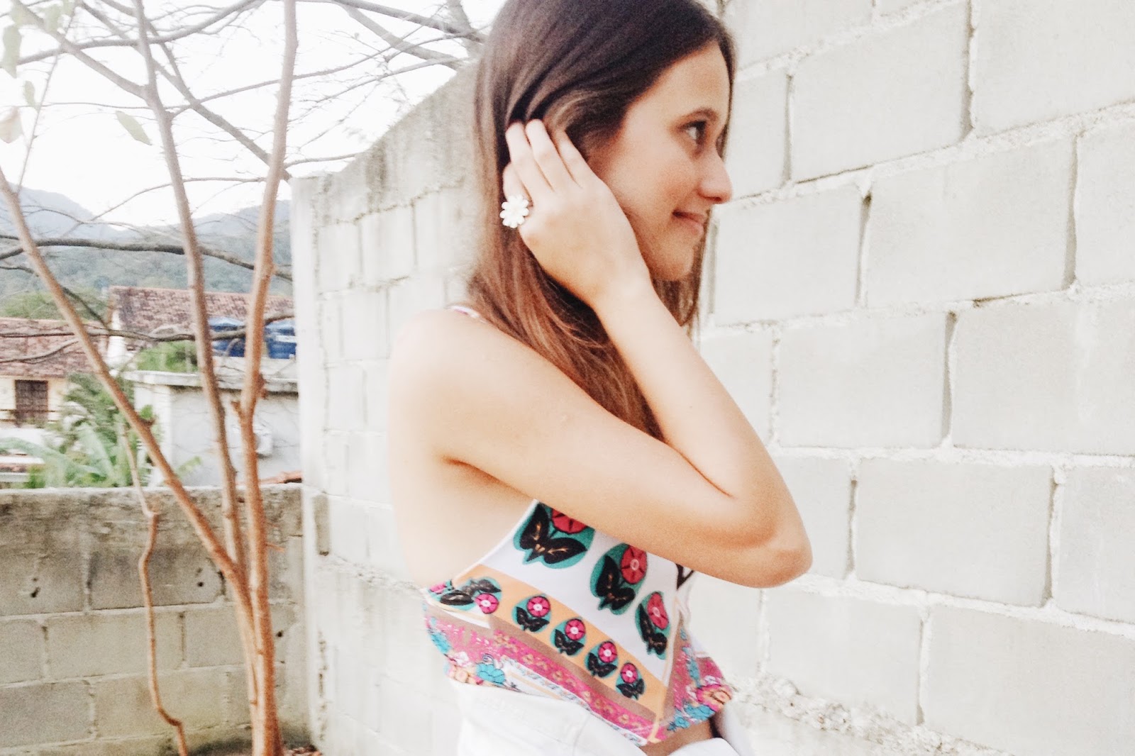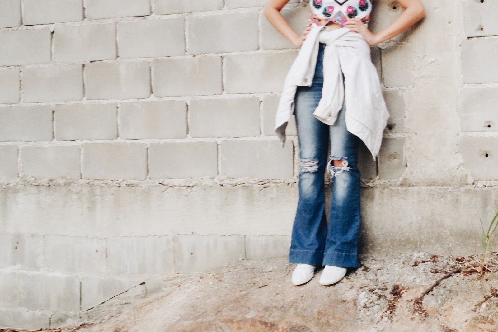Enfim, eu escolhi uma blusinha de verão, que eu já usei em uma das fotos por aqui, afinal é pra isso que eu to aqui, pra mostrar que você pode expressar seu próprio estilo com as roupas do seu próprio guarda-roupa. Continuando. [rs.] Coloquei ela com um jeans rasgado no joelho e um tênis, o que está ótimo pra um dia solar. Só que, como a temperatura está oscilando e faz um friozinho, a jaqueta oitentinha, que eu não acho que é tão velha [jeans branco, pelo menos de noventa ela é, rs.], deu aquela esquentada no look e me deixou bem confortável. E ah, meu anel de margarida deu ar de hipponga lembrando os anos setenta. Pois é, trinta anos em uma só roupa.
